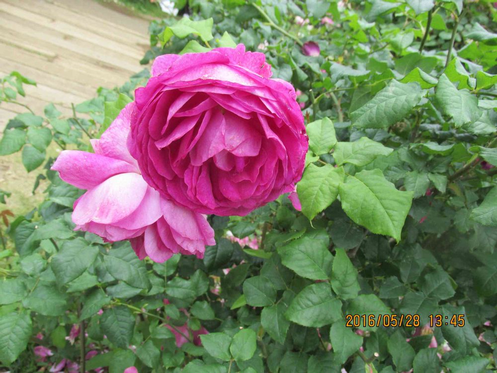 典型的なオールドローズの魅力を持った品種で、大輪のディープカップ咲き。
