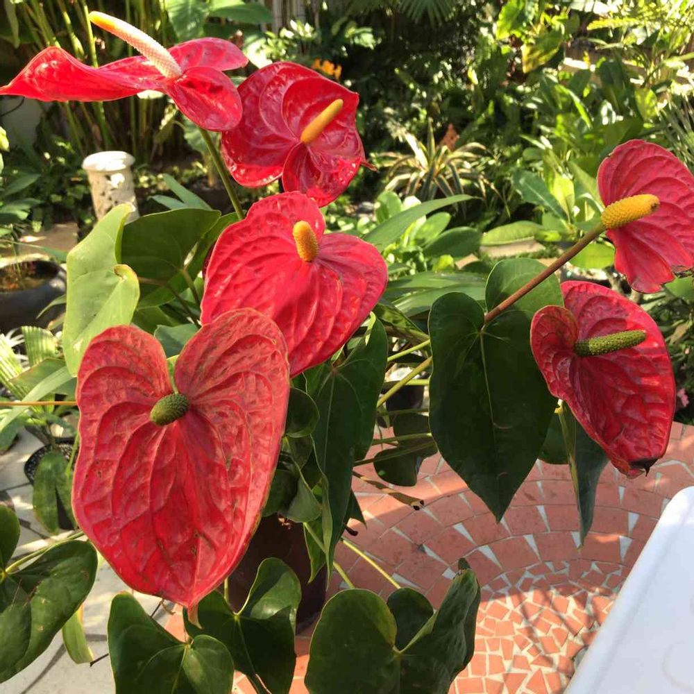 小庭のアンスリウムを室内へ移動しました。冬支度開始です。