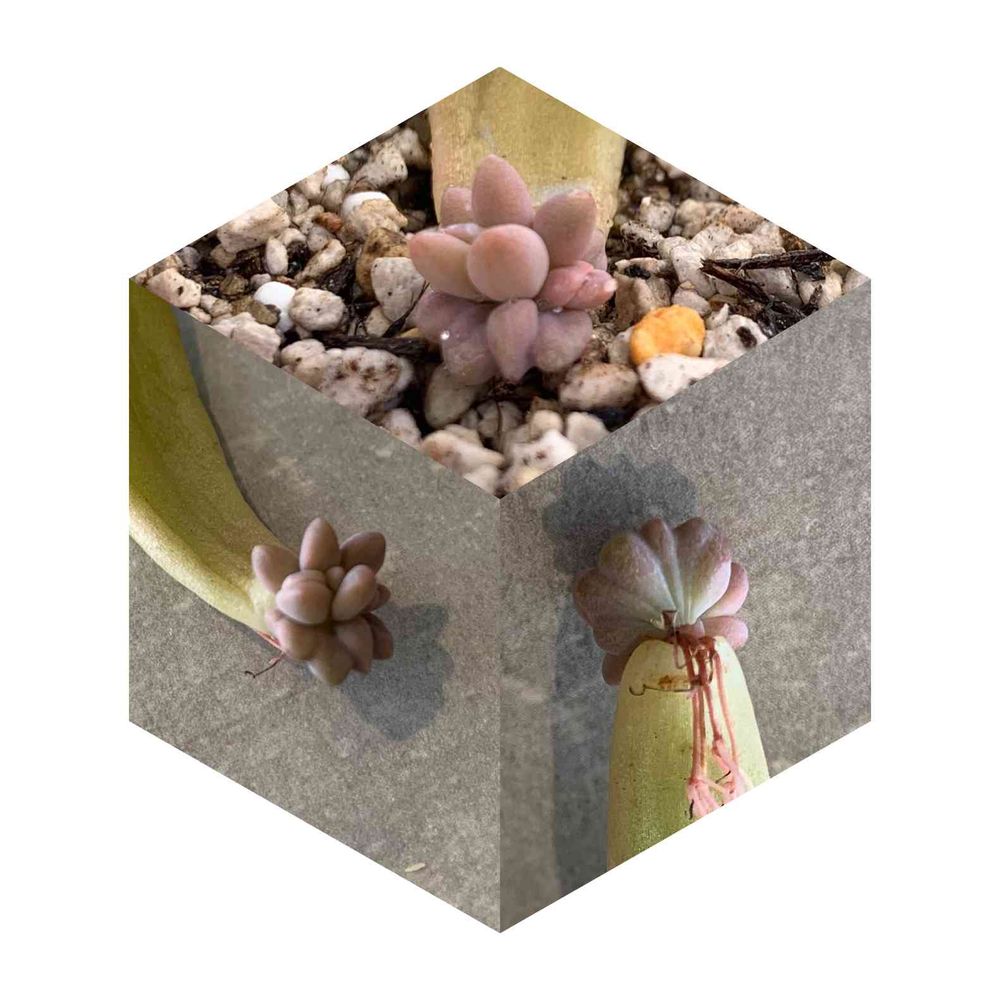多肉の葉挿しに一個ちいさいのにモリモリの子がいて、少し根に土をかけてあげようと持ち上げ、裏返すと、あんれー??