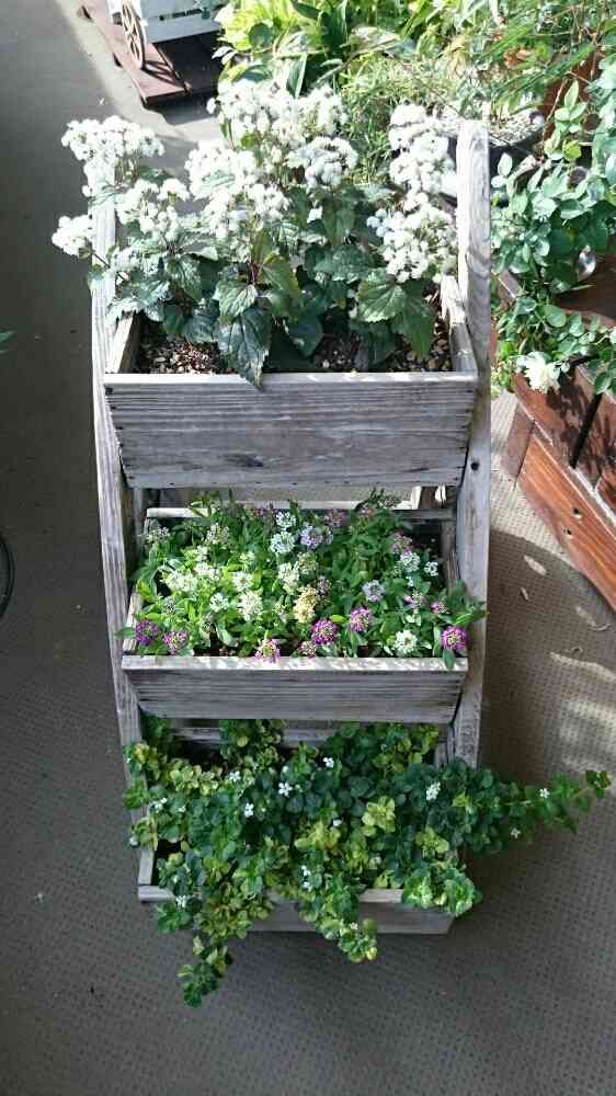 今まで鉢受けとして活用していたものを3段きちんと植えてみました。ちゃんと育ってくれるといいな。