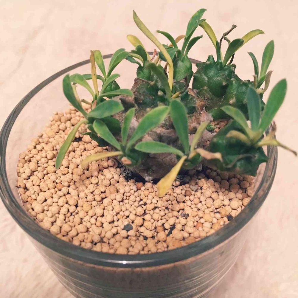 そうなのですね💦パッと考えられるのが栄養不足と蒸れでしょうか。ガラスが難しそうなので、素焼きの鉢に植え替えてみる事にします😨 ありがとうございます😊✨