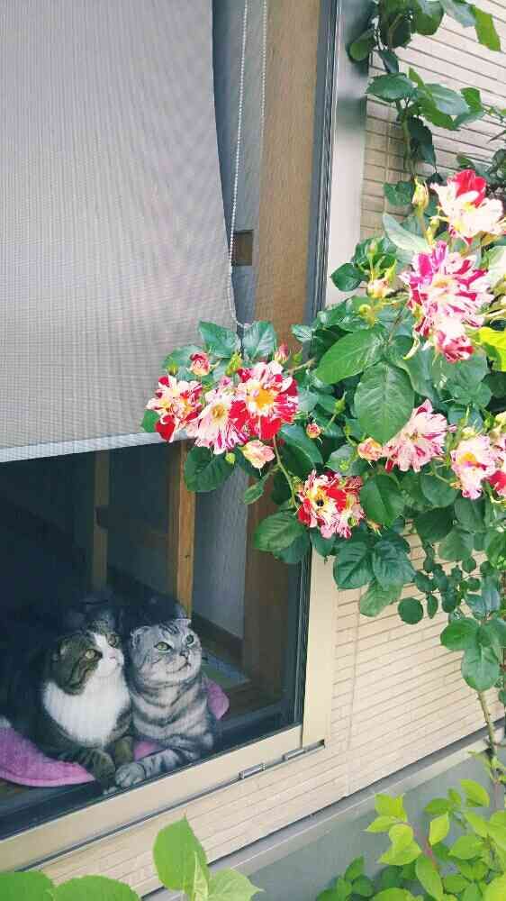 かわいいいいいいっ😍💕奇跡的に素敵な写真ですね✨たくさんいいね押しちゃいました。きれいなバラにかわいい猫ちゃん、その猫ちゃんたちのポーズたまりませ~ん💕癒されました、ありがとうございます(*^^*)