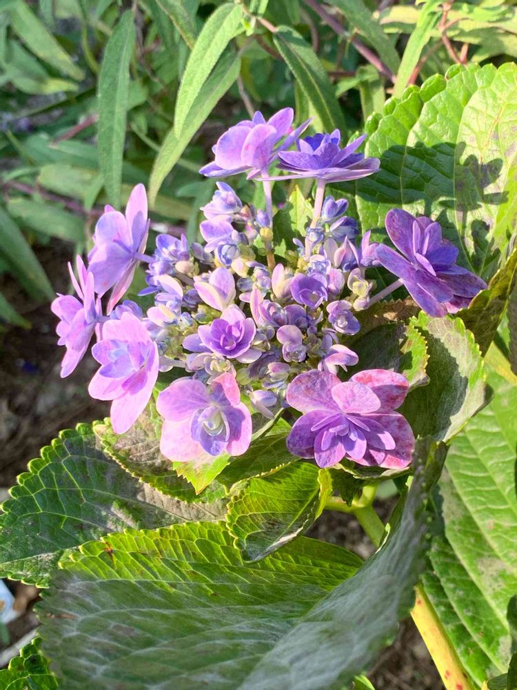 6月の時は青い肥料をあげていたからきれいな青でしたが、普通の肥料をお礼肥にしたら紫に