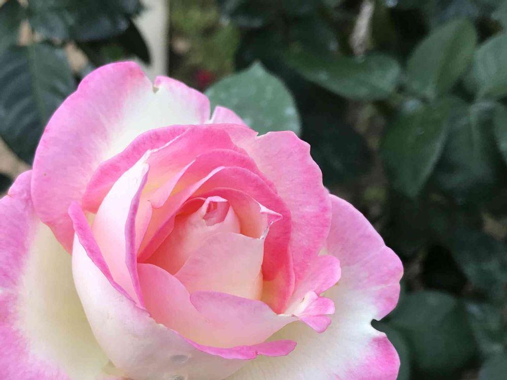 美しい白色にピンクの縁どりが素敵なバラ💕💖✨