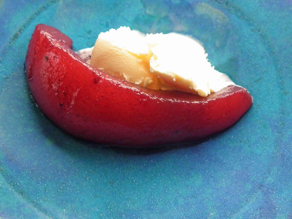 バニラビーンズを使って、アイスクリームを添えていただきます。