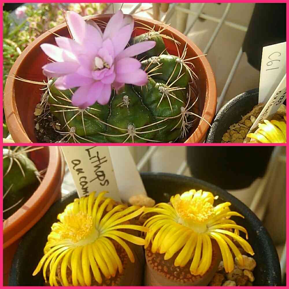 リトープスも日差しの関係か、開きすぎで咲いています。