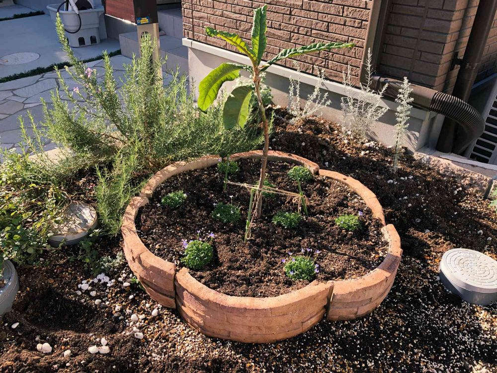 枇杷もこれからシンボルツリーになる予定。この夏で約30cm→約50cmに急成長。
