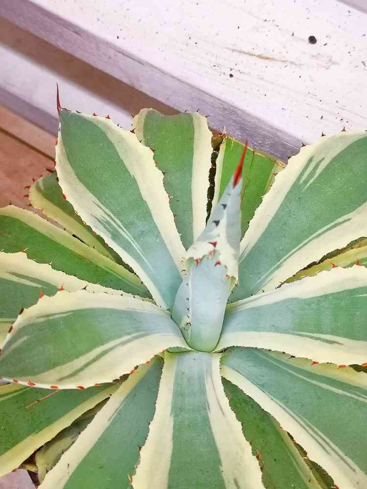 アガベ 吉祥冠錦ですね。少し徒長気味ですね
