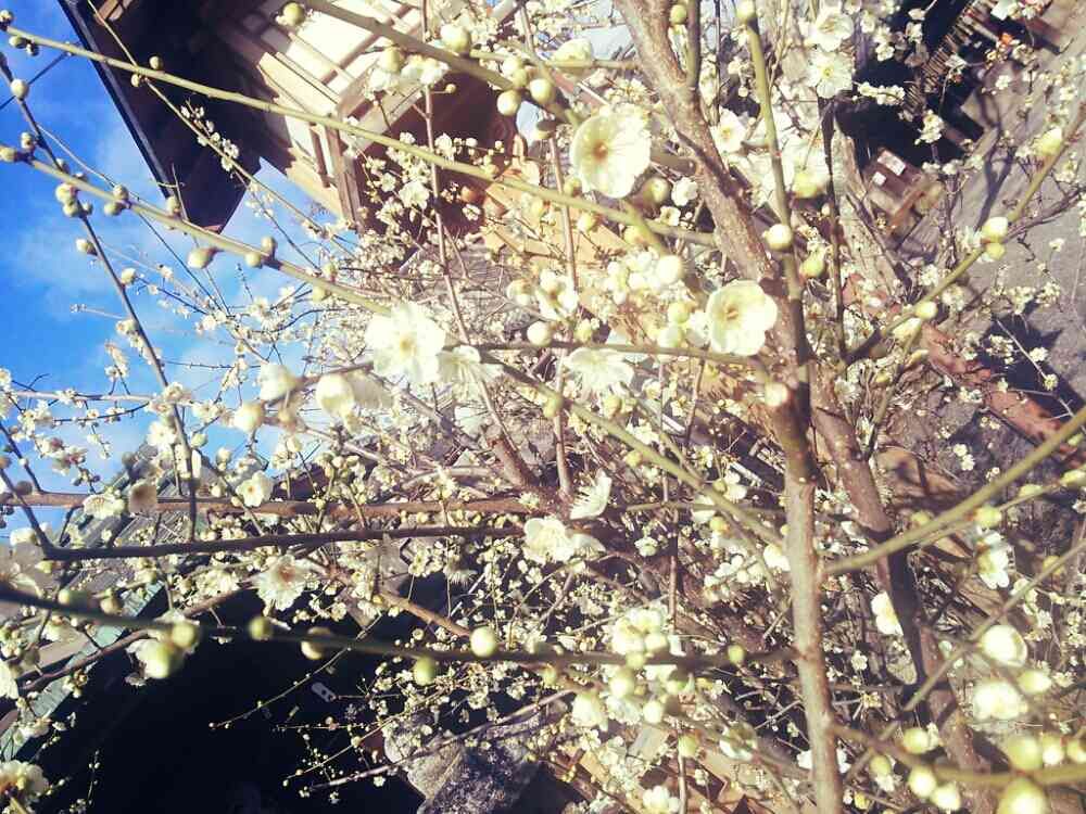 満開の緑萼梅(りょくがくばい)氏神様の神社の天満宮社の前にて。梅は今が見頃です。(*^^*)
