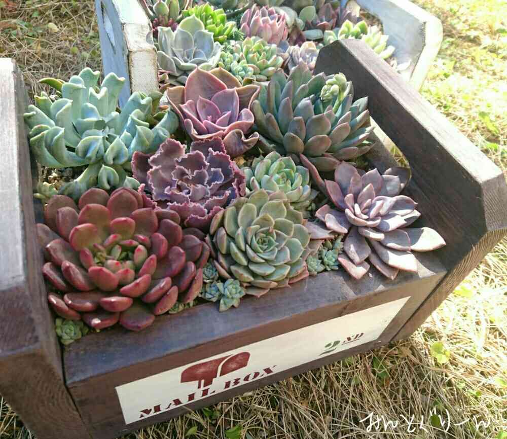 多肉の木箱寄せ もう1個出来たよ~♡~(>᎑<`๑)♡