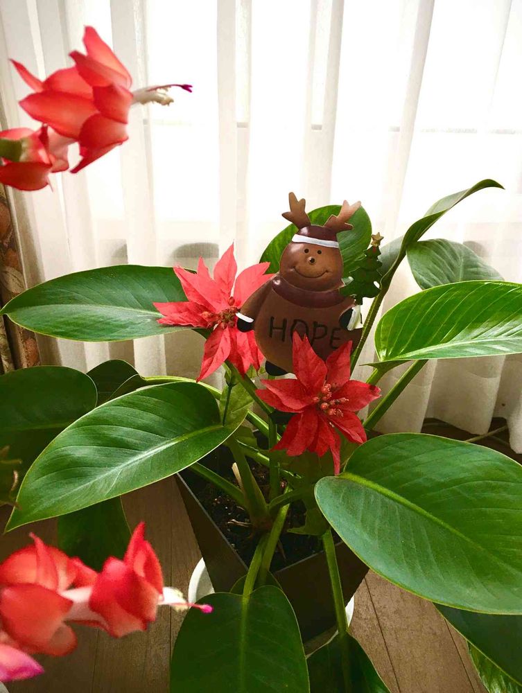 横からちょい見えのはクリスマスカクタスですが、これは本物❣️
