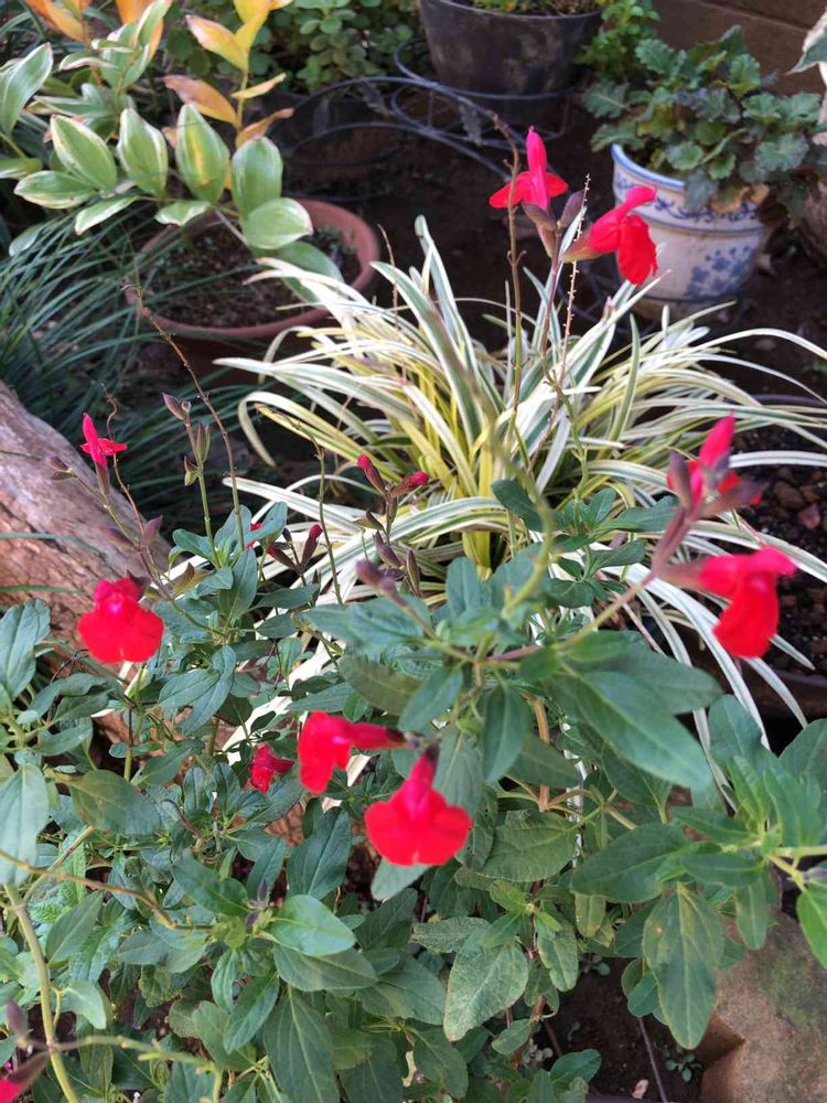 チェリーセージの色が変わるのは、多分ホットリップスって種類なんだと思うよ!