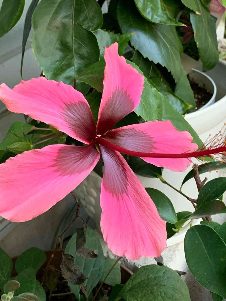 八重のハイビスカスさんも、ブッソウゲも大好きだけど、この一重のハイビスカス🌺さん、シンプルでお花が大きくてお気に入りなんです😆💕