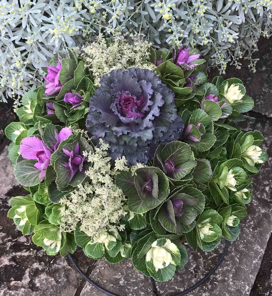葉牡丹だけの予定でしたが、数が足りなくなったので、庭からタイムを調達😆