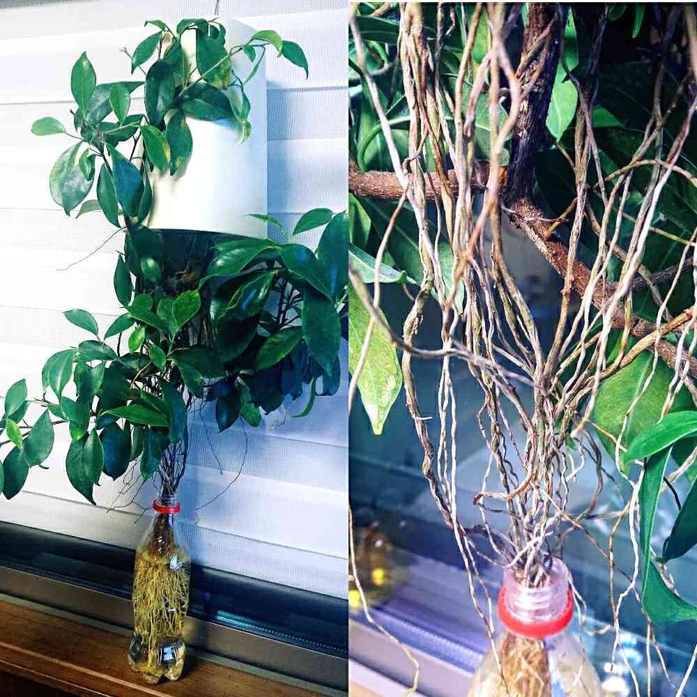 気根が沢山でてきたので水につけて水耕栽培風にしてみた😄ら気根が枝くらい太くなってきました👀