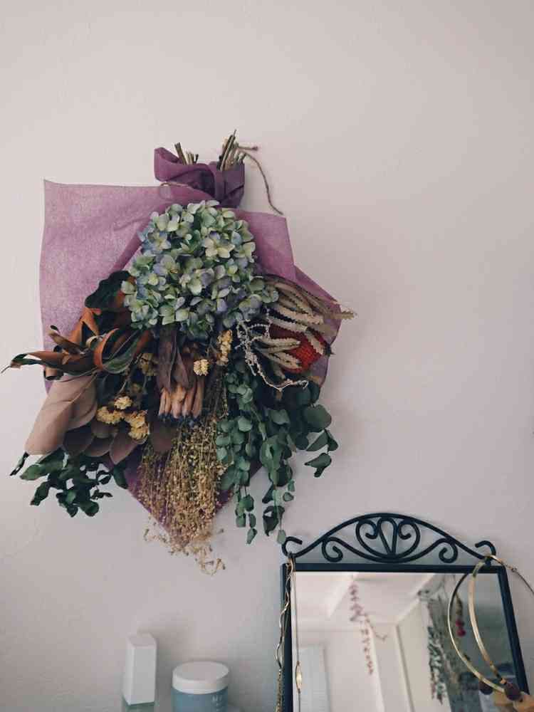 やっと憧れのドライフラワースワッグを作りました🌼