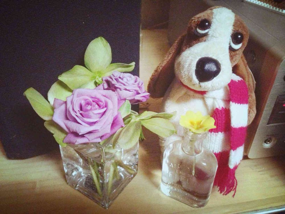 昨日のミニバラとニゲル。プリムラ一輪^ ^