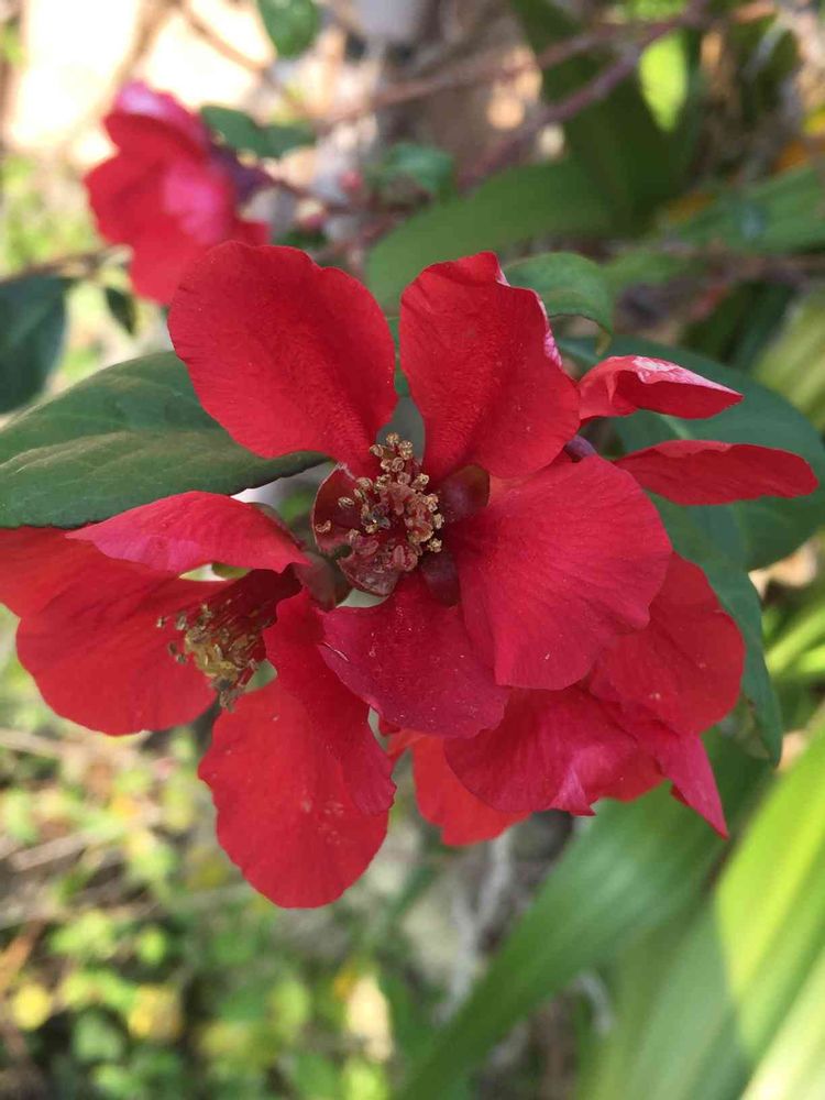 ほんと、普通のボケの花に比べると、花びらが広がってますよね😊