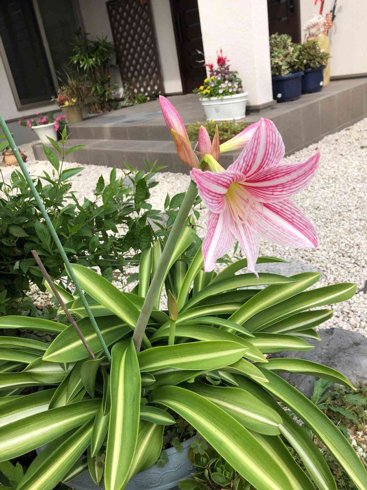 アマリリスが一輪完全に咲きましたよ❣️次の蕾もふくらんでます。