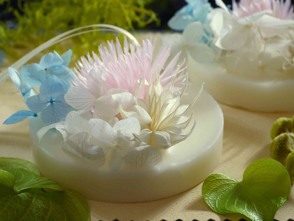 自家栽培のアナベルをプリザーブドフラワーにして、シルバーデージー、ニゲラオリエンタリス等の花材を加えてアロマワックスバー(サシェ)を作ってみたょ(◦ºั╰╯ºั◦)♬*