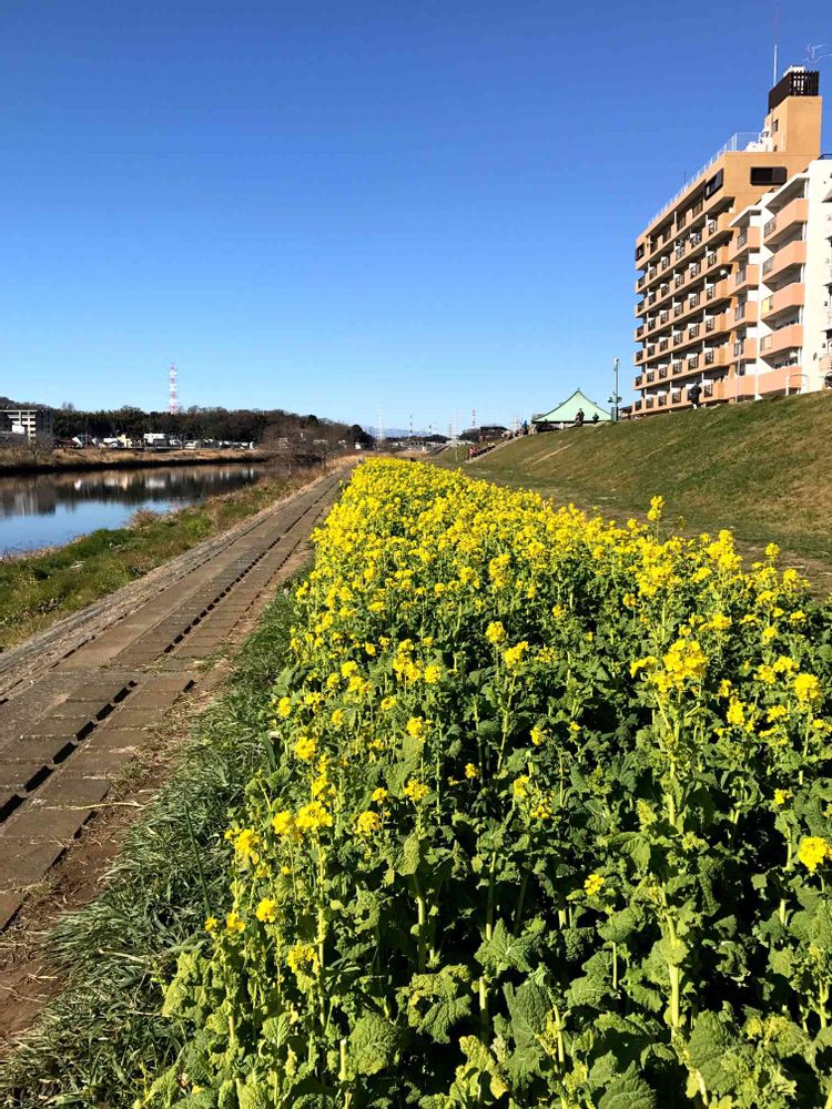 近所の川辺、今日のお花ナノハナ🌼
