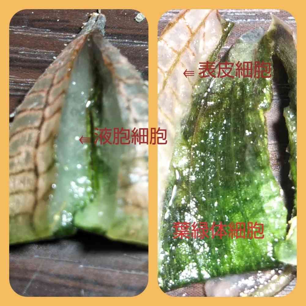 液胞細胞を取り除いみると、葉緑体細胞が見えるね。