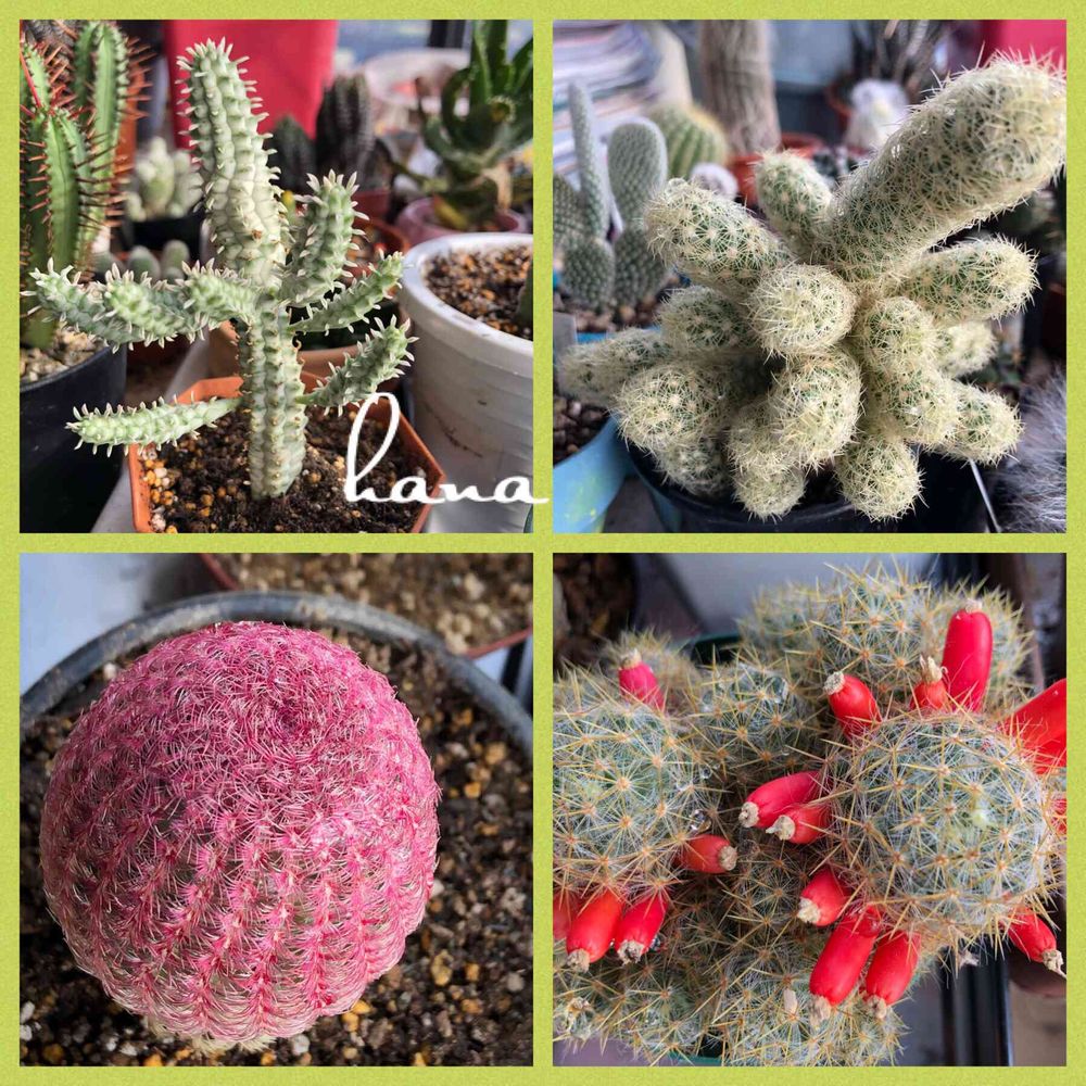こんばんは😊右下の子の赤いのは種ですか?我が家のサボさん、元気です♪( 'ω' و(و