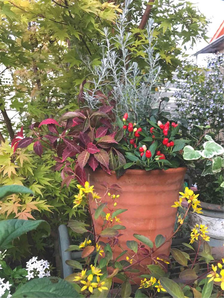 小さな庭,ヘンリーヅタ,観賞用トウガラシの投稿画像
