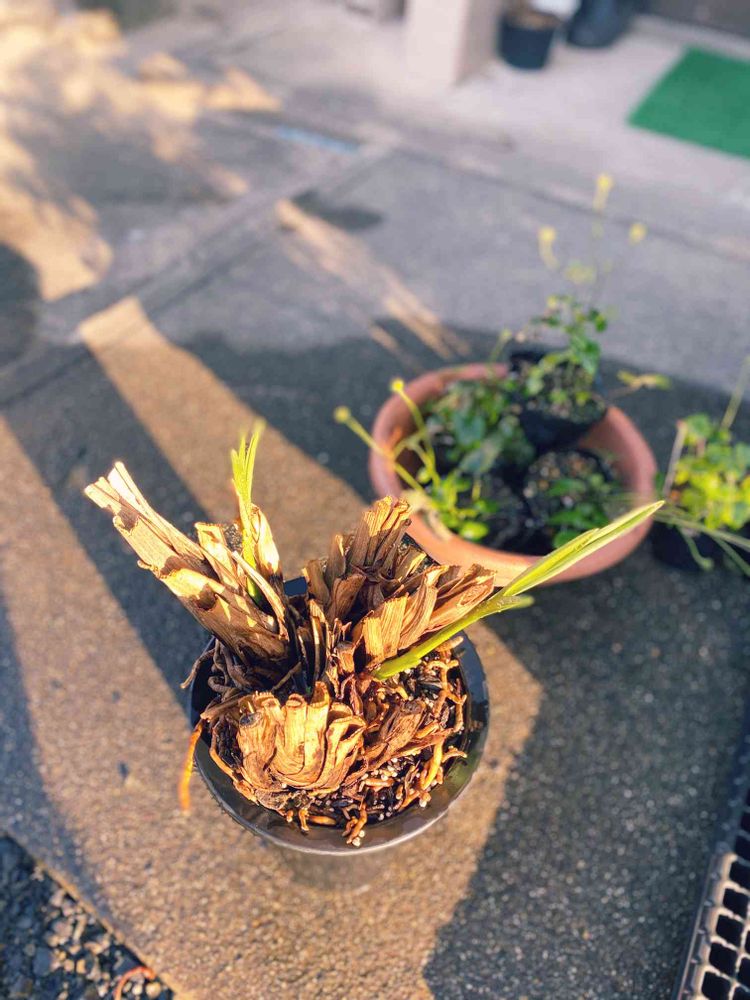 土はカラッカラに乾いていたけれで頑張って新芽を出してました(*≧∀≦*)