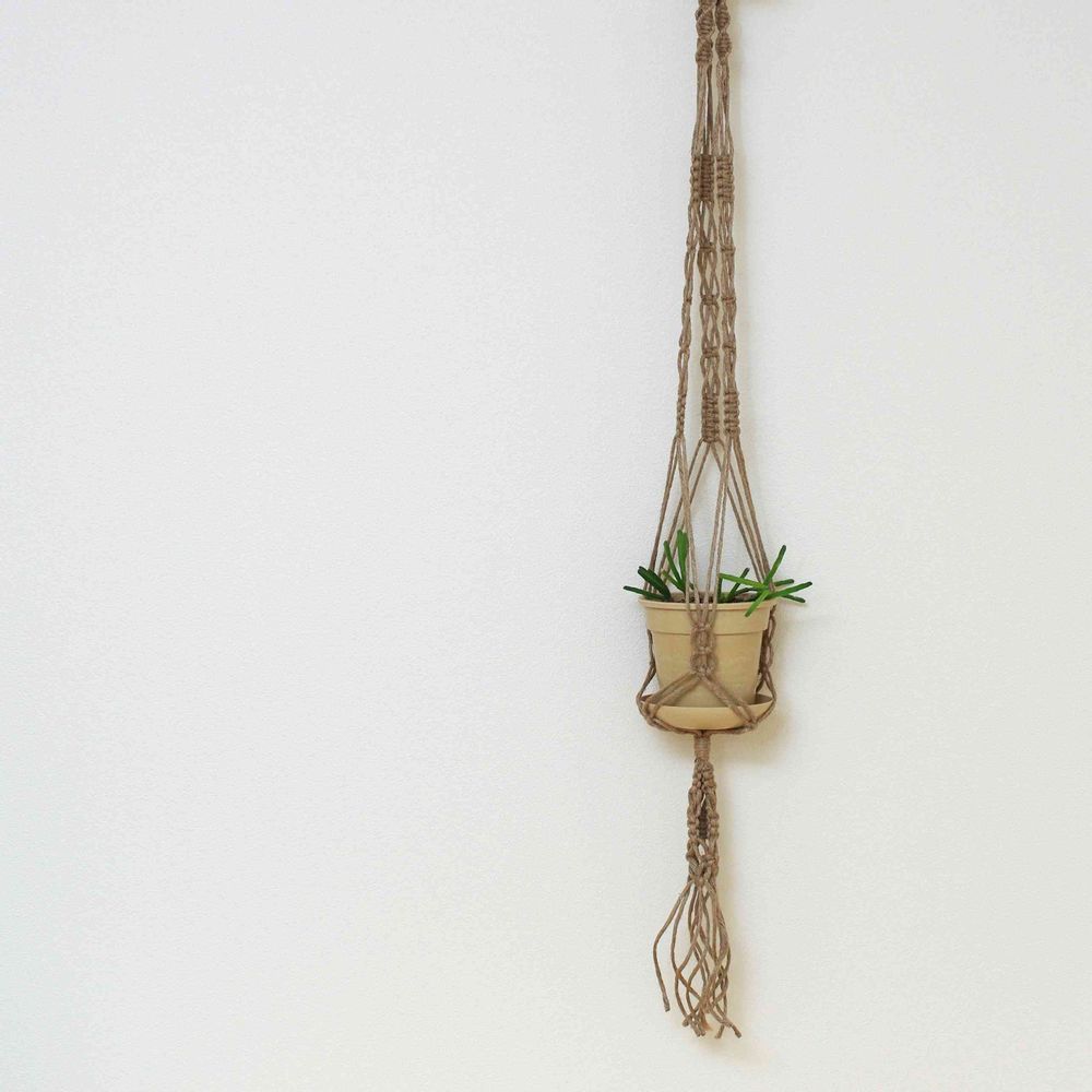 綿ロープが足りなかったので、麻ひもでプラントハンガーを作ってみたけれど、ナチュラルな感じで良いです。