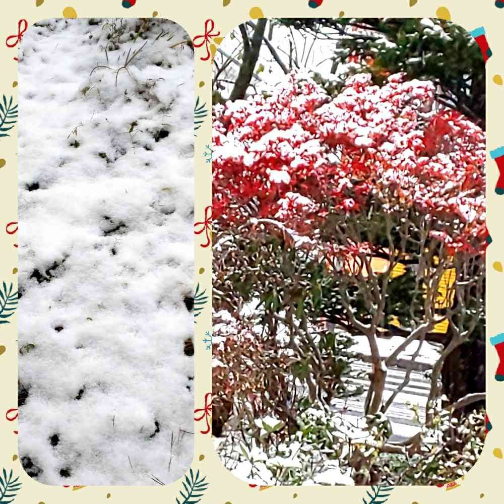 こちらでは当たり前の風景ですが紅葉の赤に積もる白い雪は やっぱり綺麗ですよね💖