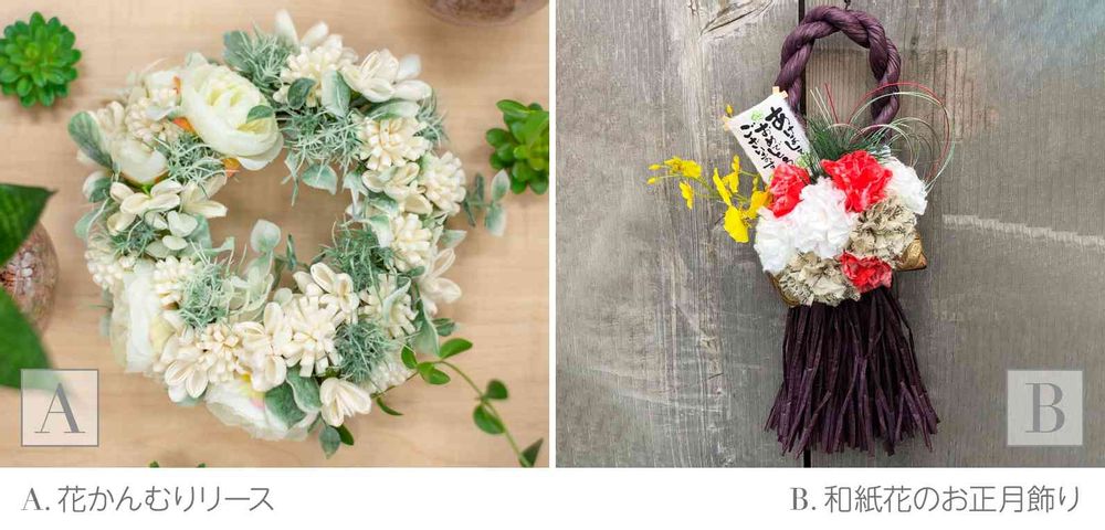 (B)細川紙、小川和紙で作る和紙花のお正月飾り