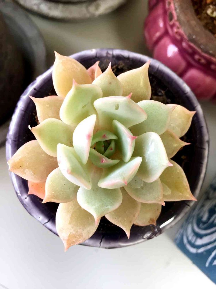 新しい家族そのいち🌷ローラのアシュレイ😋🌱笑 この透明感に殺られた🤒💭紫色の鉢に植え替えてすごく可愛いくなった👍🏻この美しさ伝わるかな〜😭💓