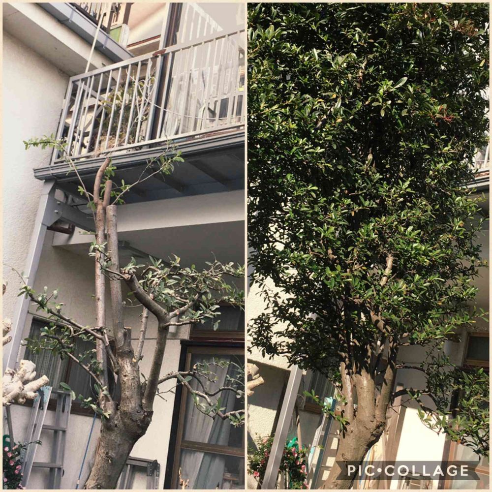 素人が表面だけ切ってきたから、太い幹も交差して木に負担がかかっているから、バッサリいってもらったの😆