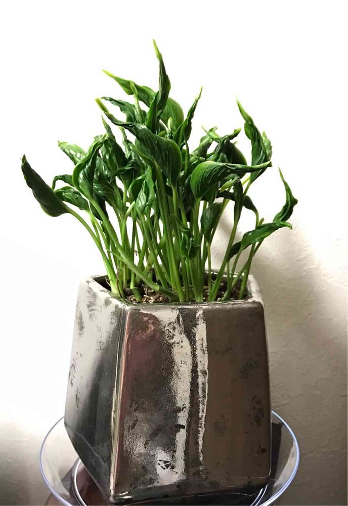 部屋の照明や小物はアクセントとしてブロンズゴールドでほぼ統一しているので、このシルバーの鉢はちょっと珍しい色味になっちゃってます💦
