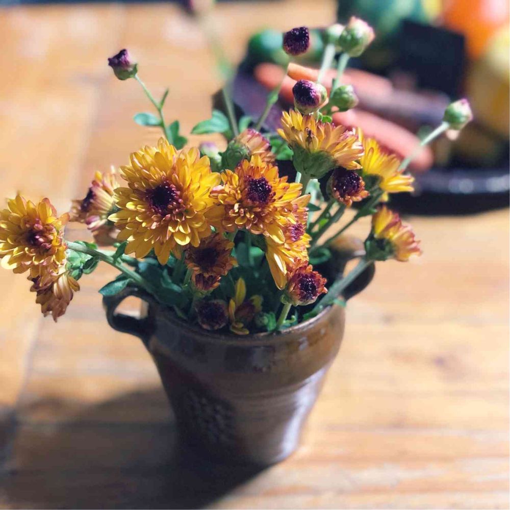 益子秋の陶器市で買ってきた花器に、小菊を❣️