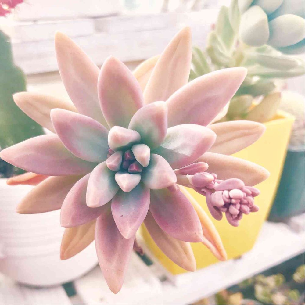 ピンクに染まった多肉さん💕花芽もちらっと。