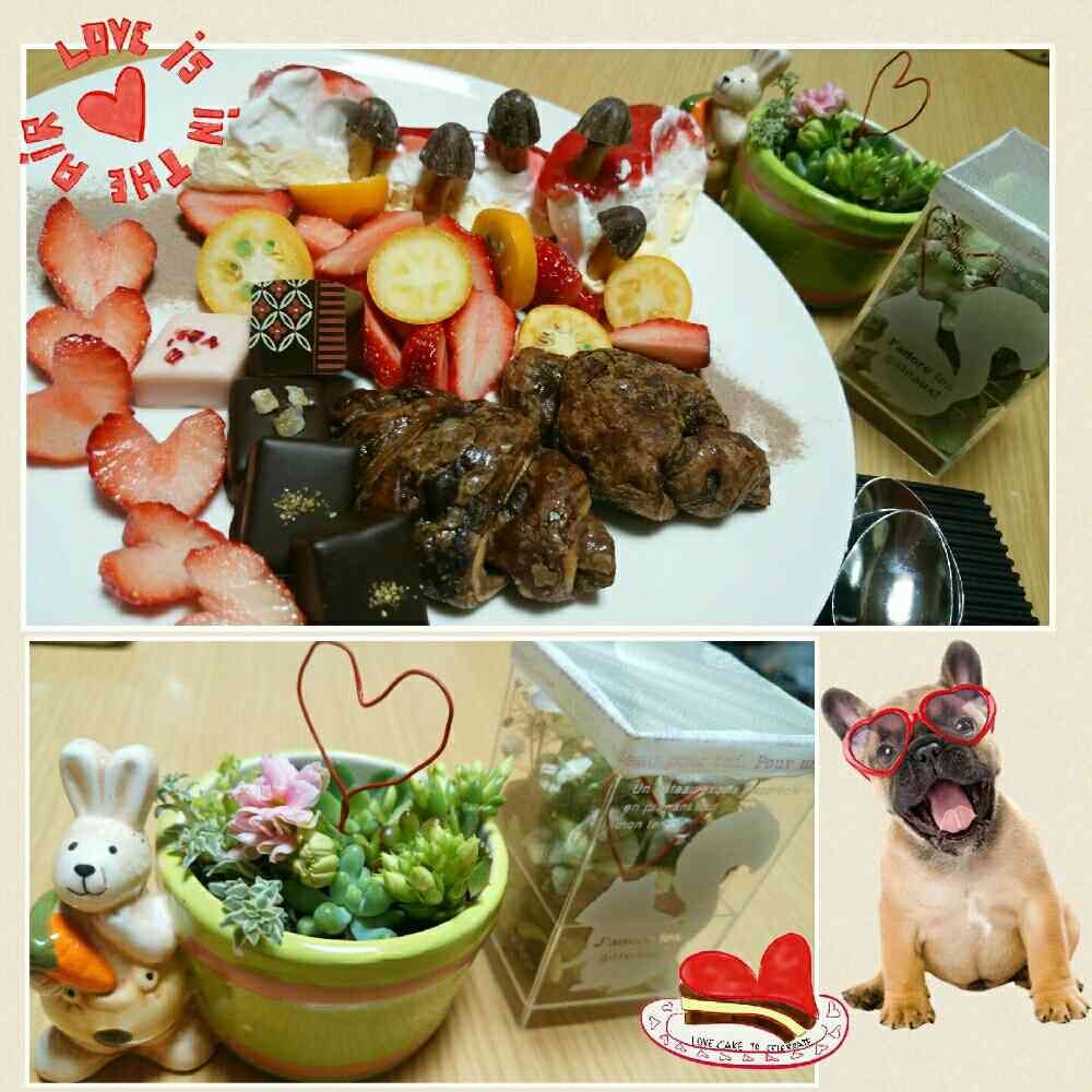 チョコやらイチゴやらモリモリ(笑)春をイメージの多肉ちゃん寄植えもこのために