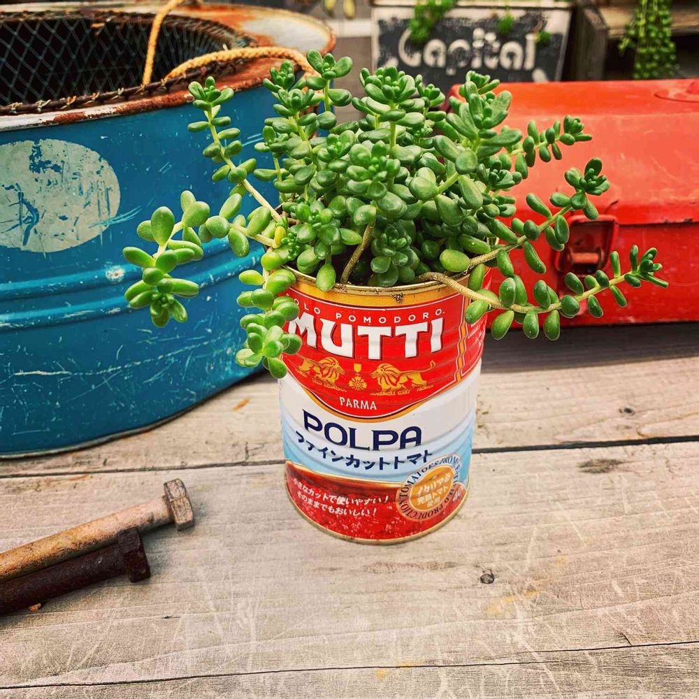 トマト缶にハーブ植えてるイタリアンのお店見て真似っ子。