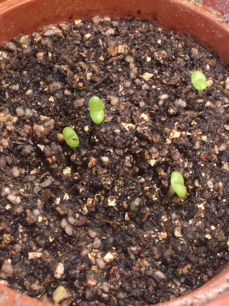 双葉が少ししっかりしてきた。もう1つの鉢はまだ脱落者がいないので、この調子で頑張れー♡
