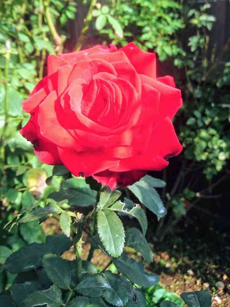 朝一鮮やかな真っ赤なバラ