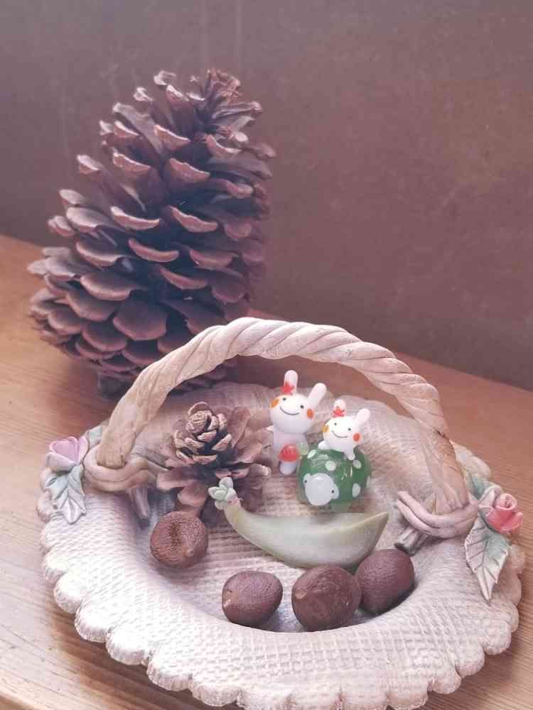 まつぼっくりが大きく見えますネ✨そして可愛いスマイリーなうさぎ💕
