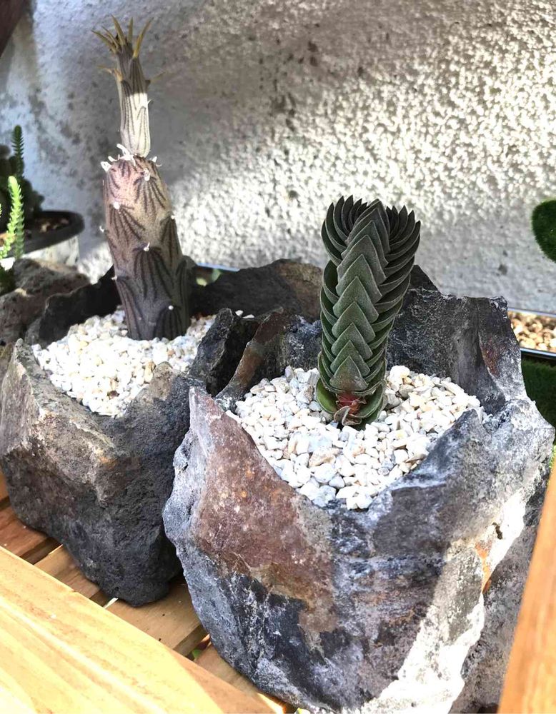 地元の方が作った山石鉢に植え替えました。趣があるんですよねー。