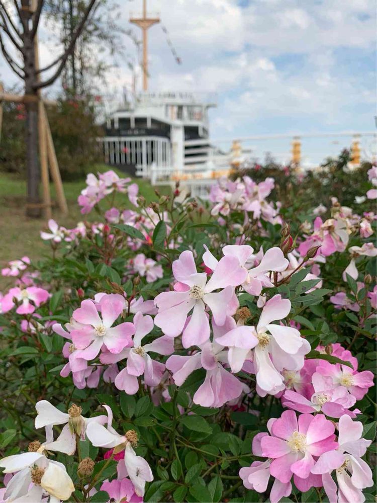 山下公園からはベイブリッジも見れるんですね。ロマンチックですね。港、ベイブリッジ、客船、そして桜薔薇、どれをとっても素敵な横浜の風景です。♡˖꒰ᵕ༚ᵕ⑅꒱