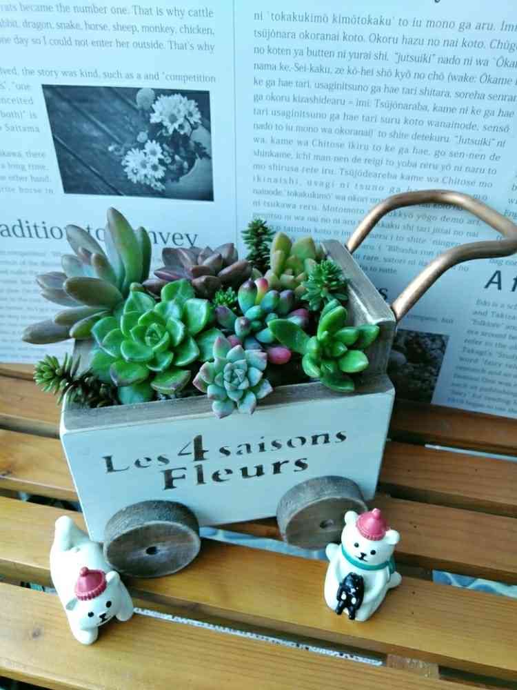 かわいいカートに寄せ植え素敵だよ(✽︎˙ω˙✽︎)♡︎