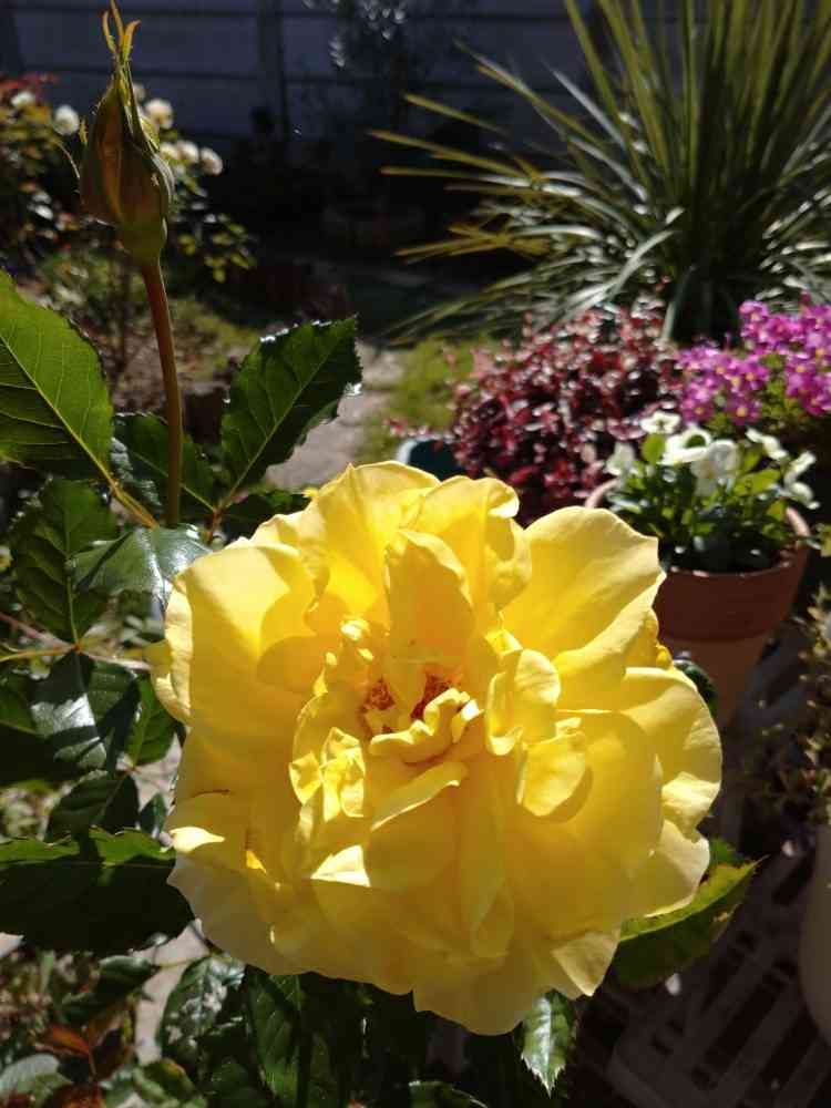 ちょっと撮るのが遅かったですが玄関前に良い香りが漂っています。フリージアと言う薔薇です。