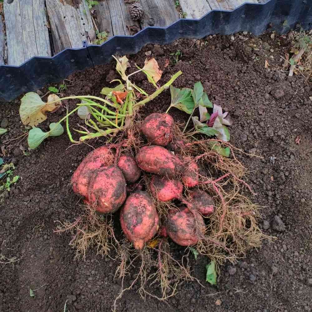 一本だけ植えた安納芋のつるから、なんと!!こんなにいっぱいのお芋が採れた!😆