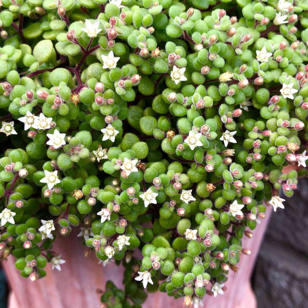 さん😊テラコッタの大鉢の縁に密集しています。狭い場所に植わってるから密集してるのかもしれませんね🌼