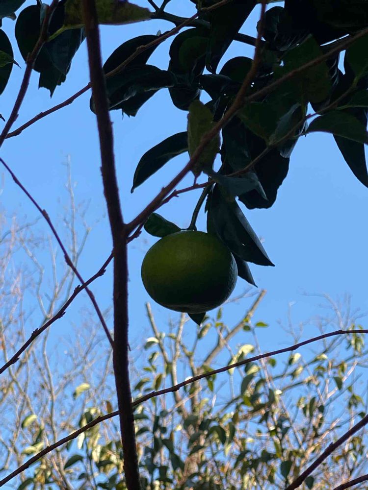 我が家 の はっさくです🍋 逆光で 色は出ませんでしたが 空の青さだけは抜群です