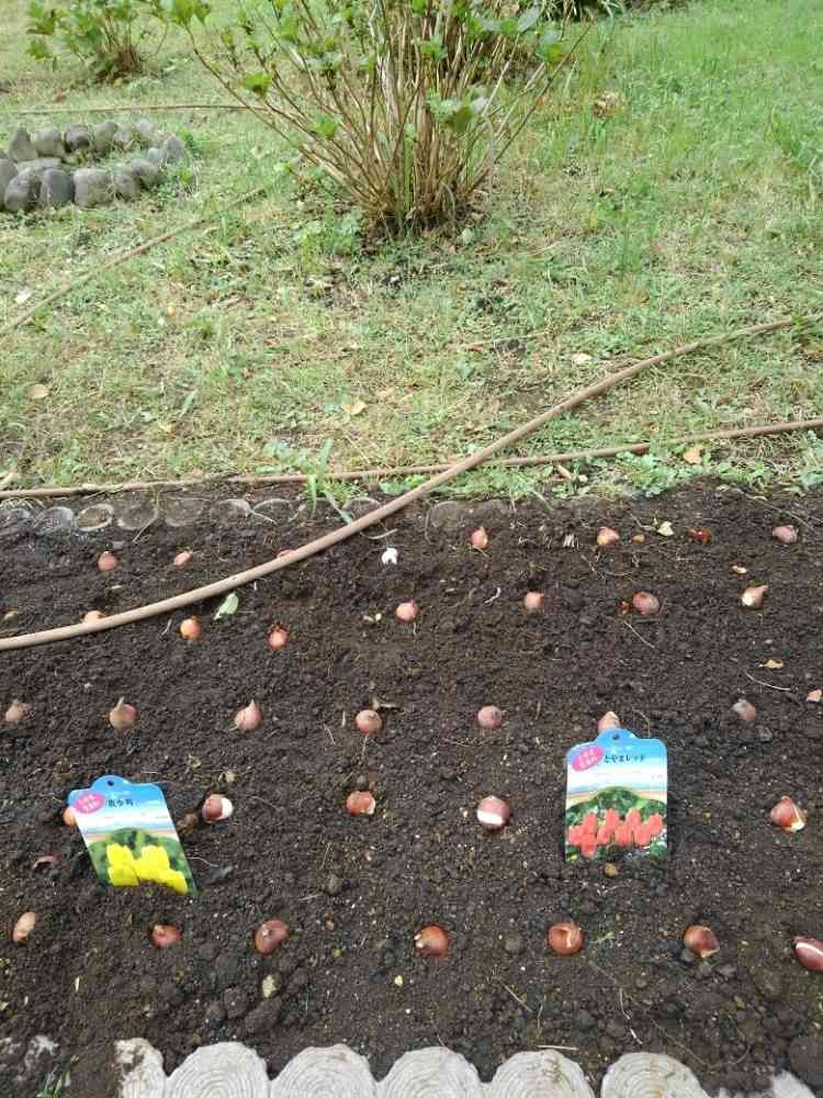 ボランティア公園に毎年近くの保育園児がチューリップ植えてくれます❗並べた通りには花は咲きません❗くっついたり、離れたり、それでもいいのです❗春にはちゃんと色とりどりチューリップが咲きます❗